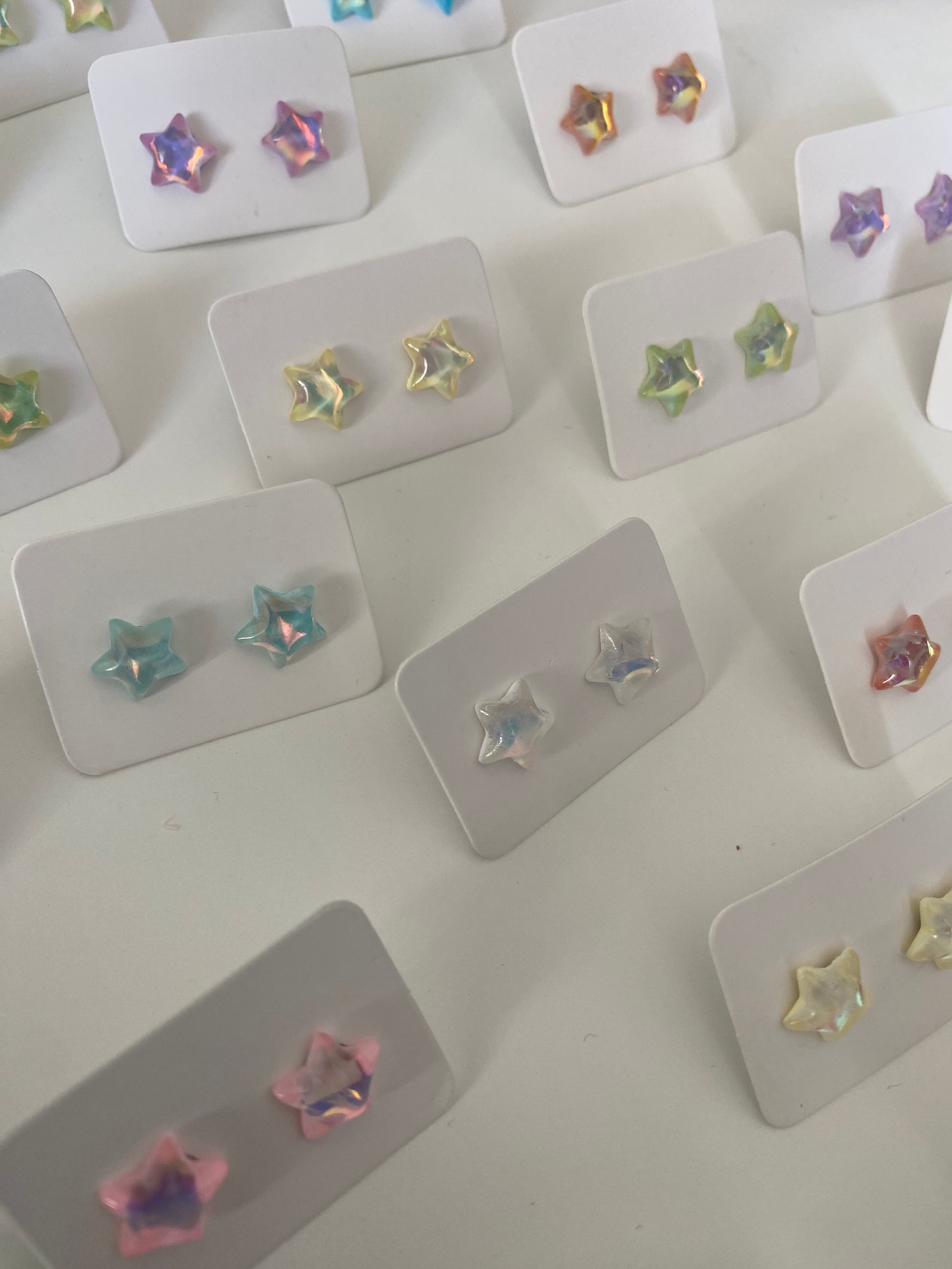 Add a touch of shimmer and elegance to your jewelry collection with our Star Earring Studs. Crafted with high-quality stainless steel, these versatile studs feature stunning iridescent stars that are sure to catch the eye. Perfect for any occasion, these earrings are a must-have for any fashion-forward individual.